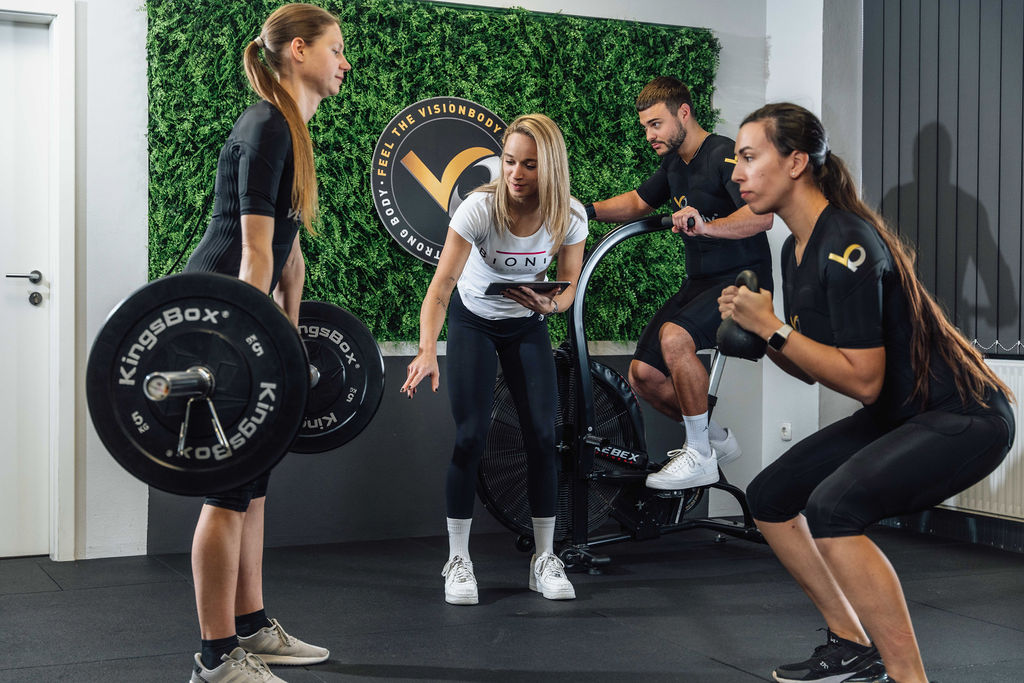 Visionbody ni le klasičen EMS (elektro-mišična stimulacija). Naš sistem vključuje tudi EMA (elektro-mišična aktivacija) s specifičnimi frekvencami, ki prodrejo globlje v mišična vlakna, ne da bi povzročile neprijeten občutek “elektrike” na koži.