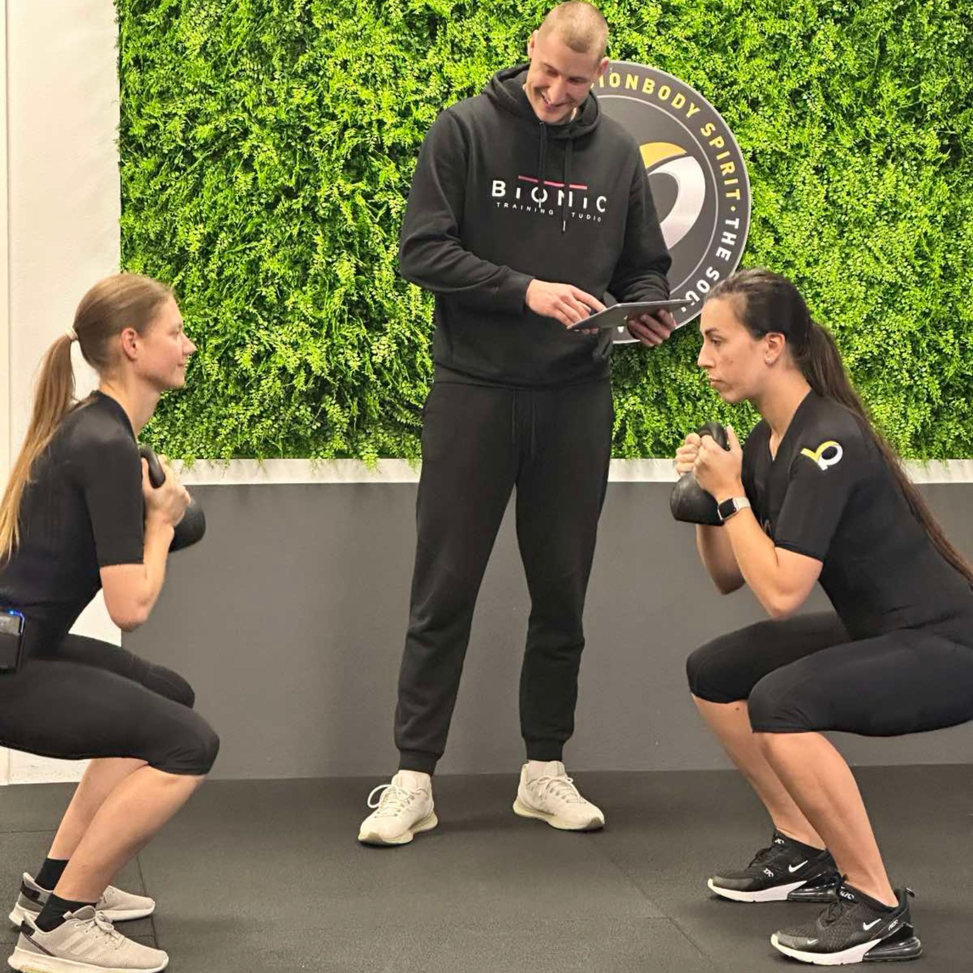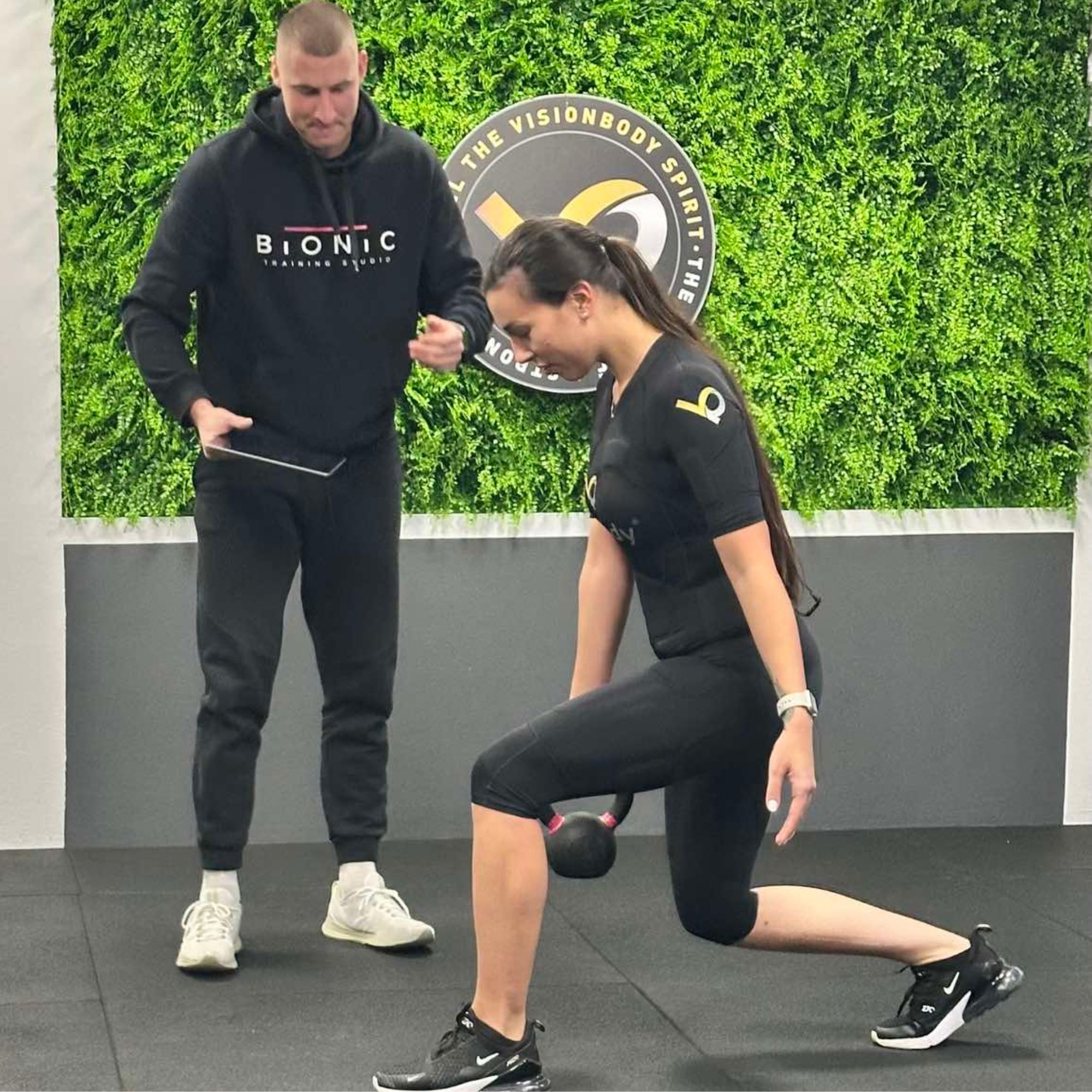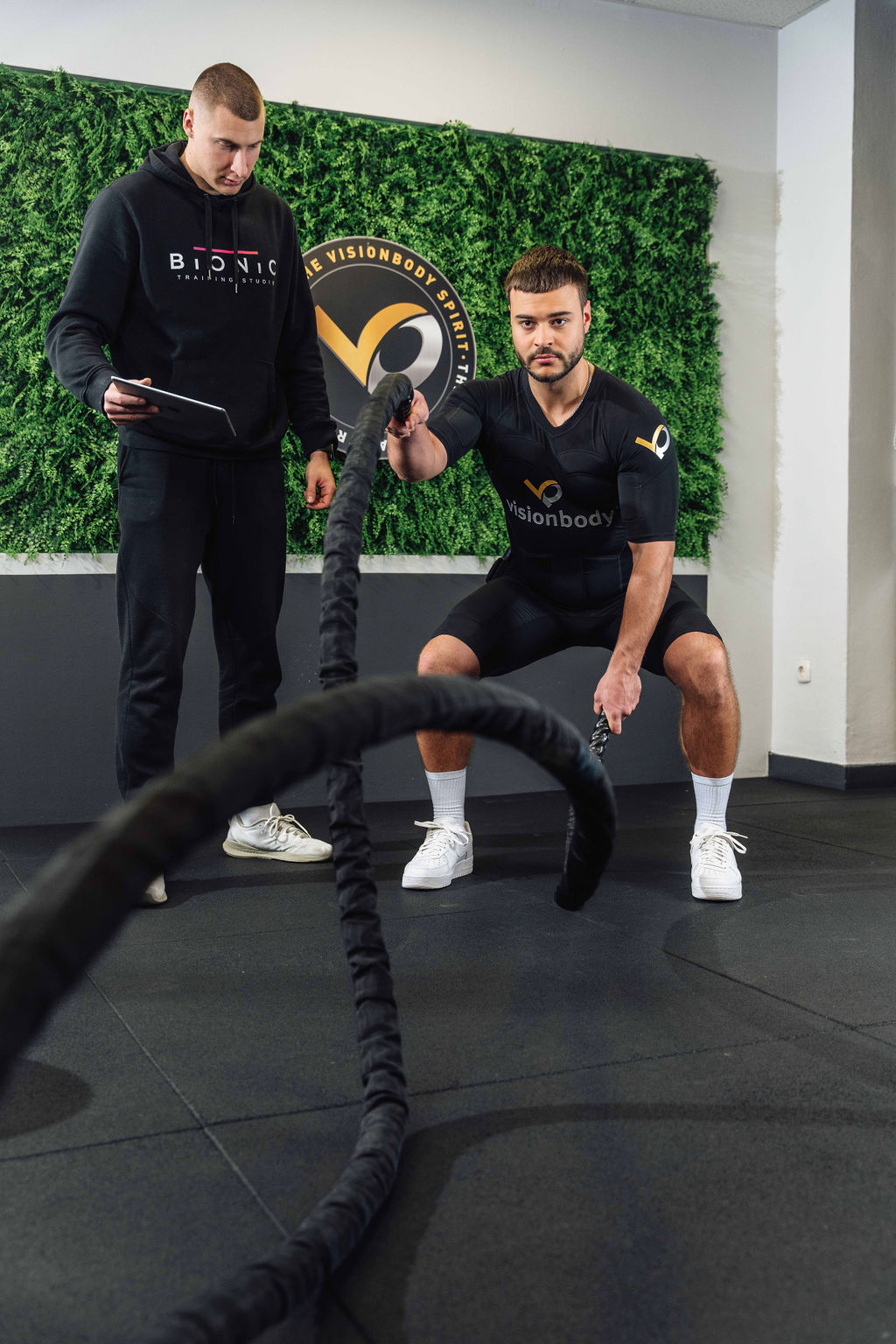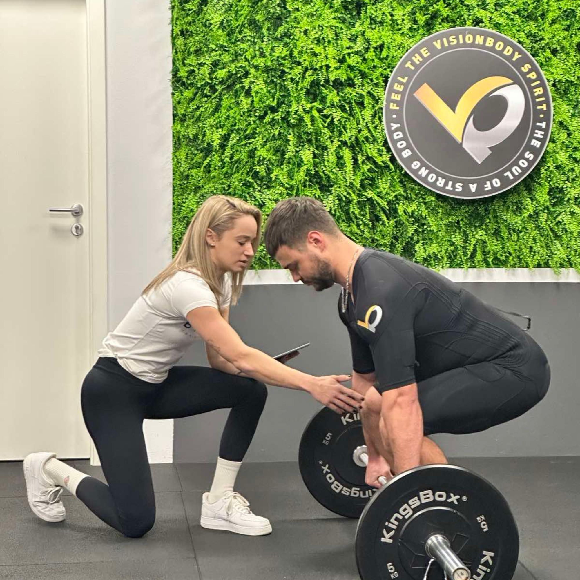 Visionbody ni le klasičen EMS (elektro-mišična stimulacija). Naš sistem vključuje tudi EMA (elektro-mišična aktivacija) s specifičnimi frekvencami, ki prodrejo globlje v mišična vlakna, ne da bi povzročile neprijeten občutek “elektrike” na koži.